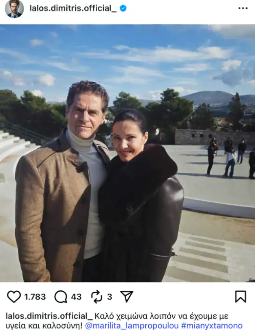Μέσα από μια ζεστή και αισιόδοξη ανάρτηση, ο Δημήτρης Λάλος ευχήθηκε «Καλό χειμώνα» μοιράζοντας στο Instagram μια κοινή φωτογραφία με τη Μαριλίτα Λαμπροπούλου.