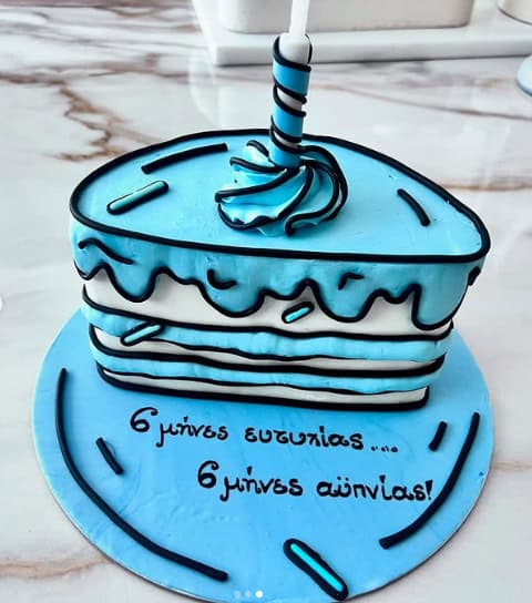 Με αφορμή τη συμπλήρωση έξι μηνών από τη γέννηση του μικρού τους, η οικογένεια ταξίδεψε στη Σαντορίνη. Εκεί, με φόντο την εντυπωσιακή καλντέρα, γιόρτασαν το πρώτο μισό έτος του γιου τους με μια γλυκιά τούρτα που έγραφε: «6 μήνες ευτυχίας, 6 μήνες αϋπνίας».