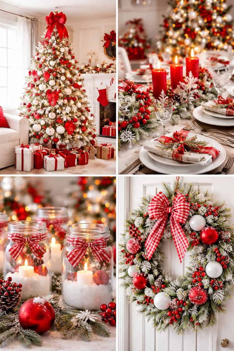 Η διακόσμηση σε λευκό και κόκκινο μπορεί να εφαρμοστεί σε κάθε γωνιά του σπιτιού, από το σαλόνι μέχρι το τραπέζι των Χριστουγέννων. Ένα χριστουγεννιάτικο δέντρο στολισμένο με κόκκινες μπάλες, λευκά στολίδια και φωτάκια σε ζεστό τόνο δημιουργεί αμέσως εορταστικό κλίμα. Οι κόκκινες κορδέλες και οι φιόγκοι προσθέτουν ένταση, ενώ τα λευκά στοιχεία «ηρεμούν» την εικόνα και την κάνουν πιο κομψή.