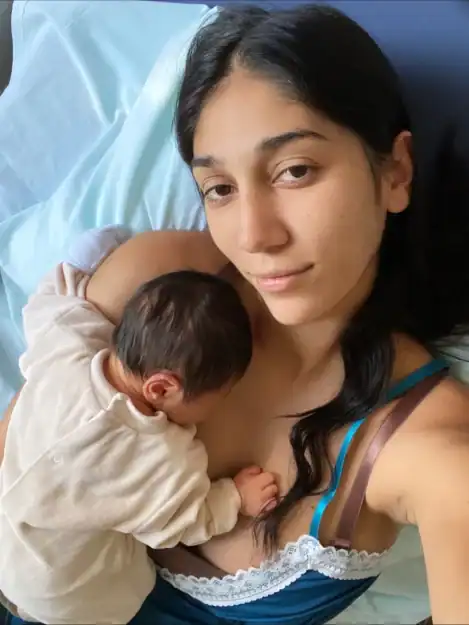 Η νεαρή μητέρα δημοσίευσε φωτογραφίες μέσα από το μαιευτήριο, κρατώντας στην αγκαλιά της το νεογέννητο αγοράκι της.