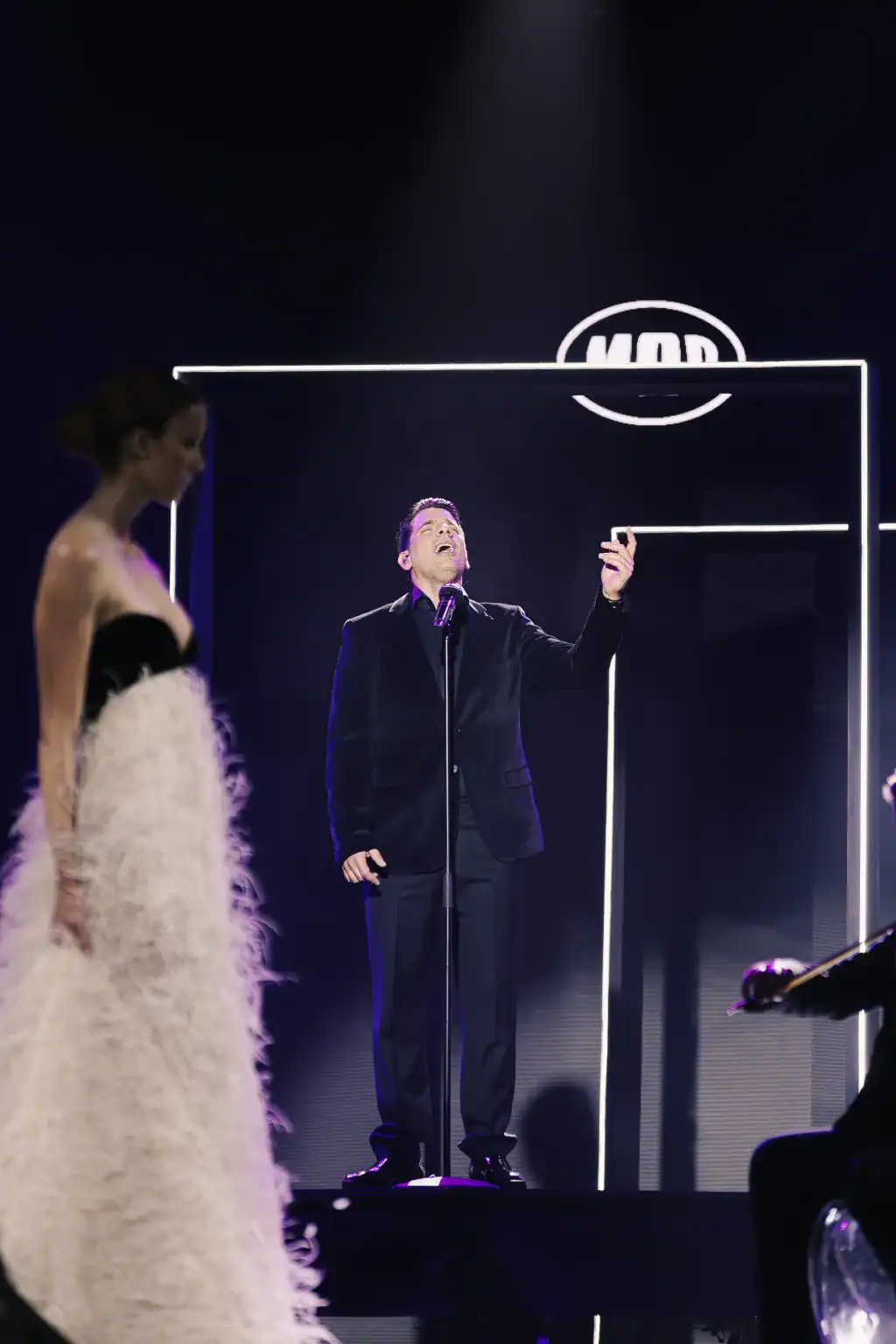 Ο δημοφιλής καλλιτέχνης ανέβηκε στη σκηνή με αυτοπεποίθηση και εκρηκτική ενέργεια, ερμηνεύοντας live τα «Πάλι Πάλι / Κούνια» σε μία μοναδική fashion performance που παρέσυρε το κοινό. Η δυναμική φωνή του κάλυψε τον χώρο, ενώ οι δημιουργίες της Celia Kritharioti απέκτησαν κίνηση και αφήγηση επάνω στην πασαρέλα, με μια ροή που ταίριαζε ιδανικά με τον ρυθμό και το ύφος του act.