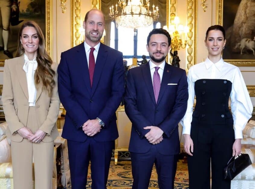 Μια λαμπερή αλλά και ζεστή βασιλική συνάντηση πραγματοποιήθηκε στο Κάστρο του Ουίνδσορ, όπου ο πρίγκιπας Ουίλιαμ και η Κέιτ Μίντλετον υποδέχθηκαν τον πρίγκιπα Χουσεΐν και τη σύζυγό του, πριγκίπισσα Ράτζουα της Ιορδανίας. Οι διάδοχοι των δύο θρόνων συναντήθηκαν σε φιλικό κλίμα, επιβεβαιώνοντας τους στενούς δεσμούς που ενώνουν τις βασιλικές οικογένειες της Βρετανίας και της Ιορδανίας.