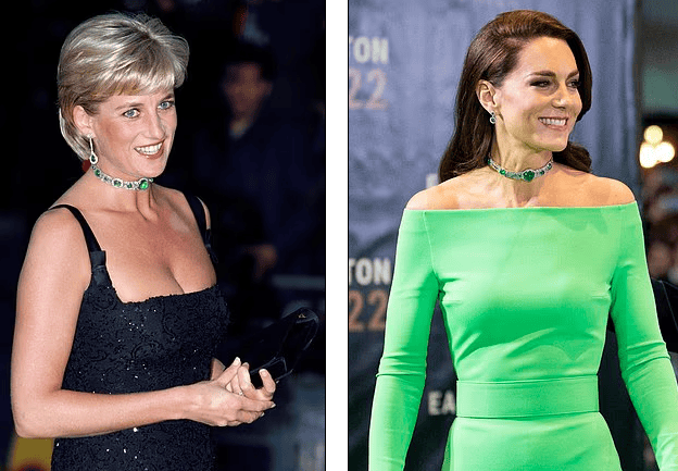 Το σμαραγδένιο τσόκερ Art Deco, που η Νταϊάνα φόρεσε τολμηρά σαν στέμμα το 1985, εμφανίστηκε ξανά στη δεκαετία του 2020 στη συλλογή της Κέιτ.