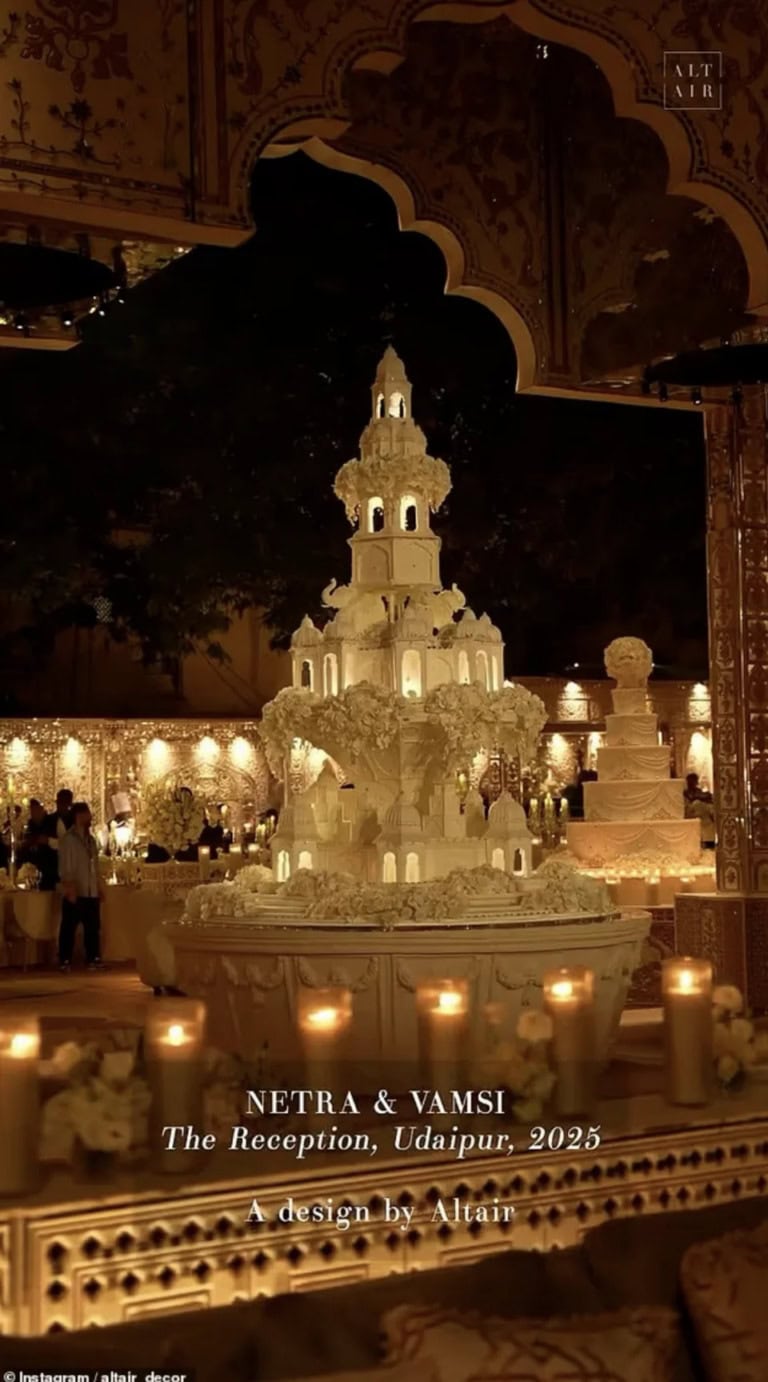 Από τα στοιχεία που έκλεψαν την παράσταση ήταν και η γαμήλια τούρτα, ένα πραγματικό έργο τέχνης ύψους 4,5 μέτρων, σχεδιασμένη σαν μίνι παλάτι, προκαλώντας θαυμασμό στους παρευρισκόμενους.