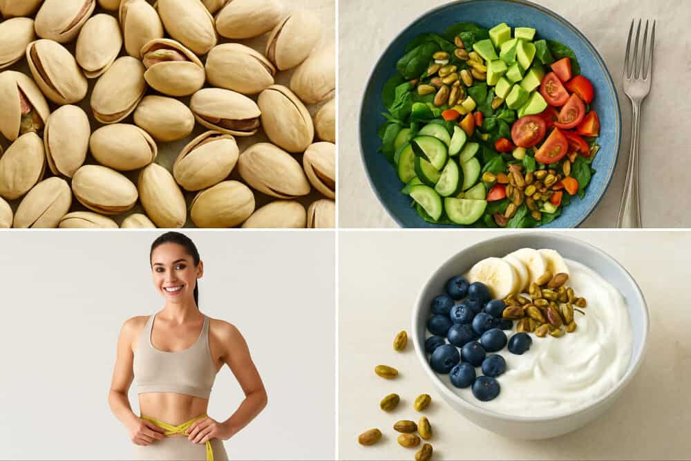 Σε αντίθεση με άλλους ξηρούς καρπούς, τα φιστίκια Αιγίνης έχουν χαμηλότερη θερμιδική αξία ανά μερίδα (περίπου 160 kcal / 30 gr) και χάρη στην υψηλή περιεκτικότητα της σε πρωτεΐνη και ίνες, σε κρατά χορτάτο για περισσότερη ώρα. Έτσι, μειώνονται τα τσιμπολογήματα και η συνολική πρόσληψη θερμίδων. Μελέτες δείχνουν ότι όσοι καταναλώνουν τακτικά αυτή την τροφή έχουν χαμηλότερο Δείκτη Μάζας Σώματος και λιγότερο κοιλιακό λίπος.