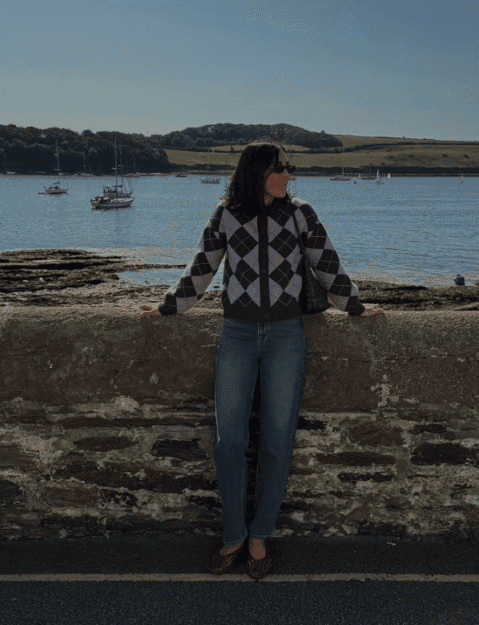 Η άνεση συναντά το στυλ με μια cozy, oversized ζακέτα. Ολοκλήρωσε το look με flat μπαλαρίνες σε έντονη απόχρωση – φούξια, κόκκινο ή ακόμη και neon – για να σπάσεις τη μονοτονία.