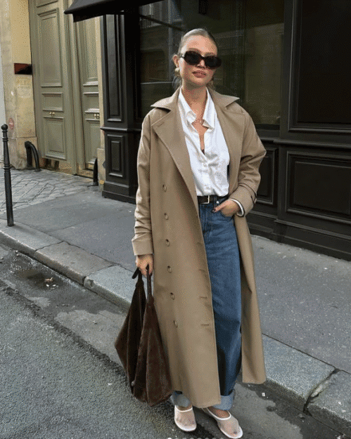Η μπεζ καμπαρντίνα είναι το απόλυτο φθινοπωρινό πανωφόρι. Συνδύασέ τη με τζιν και ολοκλήρωσε με mesh παπούτσια για ένα αποτέλεσμα που ισορροπεί ανάμεσα στην κομψότητα και την τάση.
