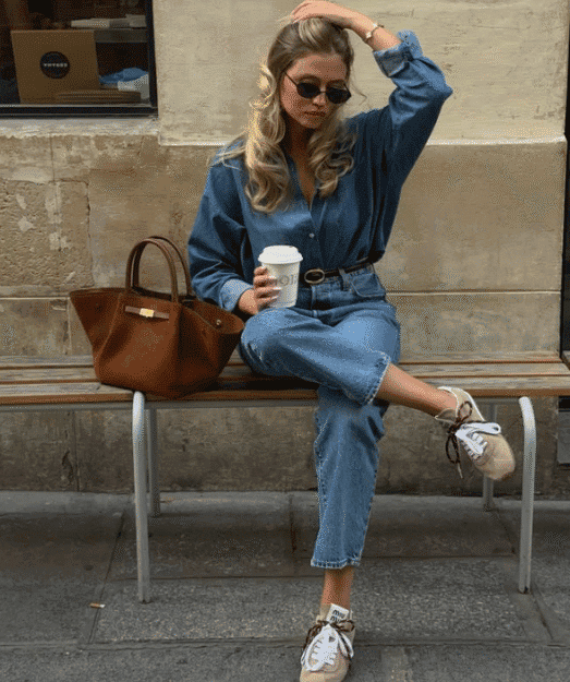 - Double denim & sneakers