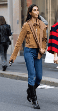 Τα skinny jeans μπορεί να ήταν «εκτός μόδας» για λίγο, αλλά το να τα φορέσετε μέσα από μπότες τα αναδεικνύει ξανά. Οποιοδήποτε slim ή narrow leg τζιν λειτουργεί, ή αφήστε το να μαζευτεί πάνω από τις knee-high μπότες για ένα πιο χαλαρό, μοντέρνο look.