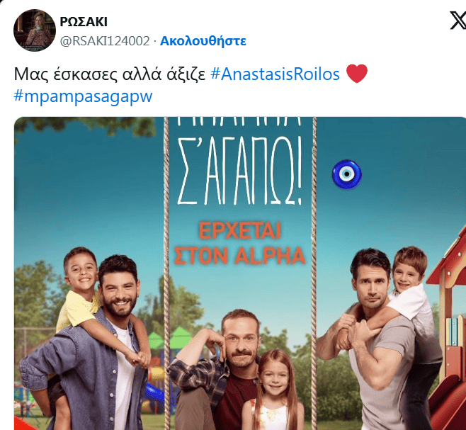 Ο Αναστάσης Ροϊλός πρωταγωνιστεί στη νέα σειρά του ALPHA «Μπαμπά Σ’ αγαπώ», πλάι στους Μιχάλη Βαλάσογλου και Βασίλη Μηλιώνη, και οι πρώτες φωτογραφίες από τα γυρίσματα έχουν ήδη προκαλέσει ενθουσιασμό στις fans.