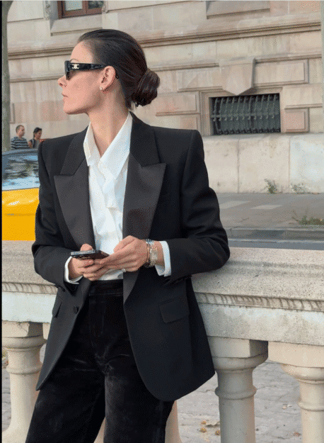 μια δερμάτινη ζώνη, ένα minimal clutch, ή ένα κομψό παλτό σε έντονο χρώμα όπως πράσινο σμαραγδί ή μπορντό. Το αποτέλεσμα είναι μοντέρνο, θηλυκό και απόλυτα ενημερωμένο.