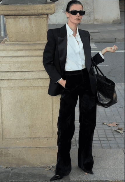 Ένα μαύρο cropped κοτλέ με λευκό πουκάμισο και σακάκι είναι το πιο stylish office look της σεζόν.