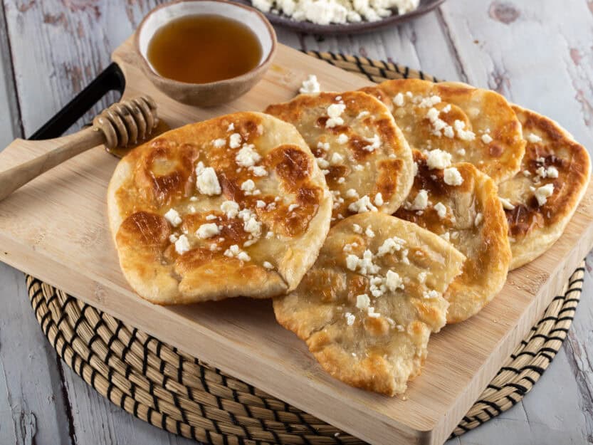 Μπορείτε να σερβίρετε τις τραβηχτές πίτες Μάνης, πασπαλίζοντας τες με λίγο μέλι ή τριμμένη φέτα.