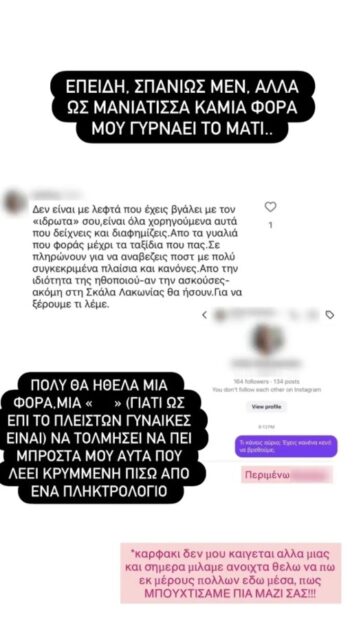 “Να σας πω κάτι; Έχω λάβει τέτοιο κύμα αγάπης από σχόλια και προσωπικά μηνύματα μετά τη σημερινή μου συνέντευξη, που νιώθω τεράστια ευγνωμοσύνη και χαρά.. Δεν είχα κανένα σκοπό να μολύνω αυτό το όμορφο συναίσθημα όμως…”, έγραψε αρχικά η Αθηνά Οικονομάκου το βράδυ της ίδιας ημέρας. Ωστόσο, όπως ήταν αναμενόμενο, κάποια από τα σχόλια δεν ήταν καθόλου εγκωμιαστικά και η γνωστή ηθοποιός δεν δίστασε να προχωρήσει σε ένα πρωτοφανές ξέσπασμα για τον τρόπο ζωής που ακολουθεί. «Δεν είναι με λεφτά που έχεις βγάλει με τον ‘ιδρώτα’ σου, είναι όλα χορηγούμενα αυτά που δείχνεις και διαφημίζεις. Από τα γυαλιά που φοράς μέχρι τα ταξίδια που πας. Σε πληρώνουν για να ανεβάζεις ποστ με πολύ συγκεκριμένα πλαίσια και κανόνες. Από την ιδιότητα της ηθοποιού -αν την άκουσες- ακόμα στη Σκάλα Λακωνίας θα ήσουν. Για να ξέρουμε τι λέμε”, ήταν το μήνυμα που έκανε την Αθηνά Οικονομάκου να βγει εκτός εαυτού.
