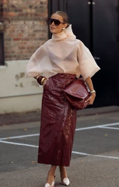 Η πιο απροσδόκητη, αλλά super stylish σύμπραξη της σεζόν. Το χακί δίνει ισορροπία και γείωση, ενώ το μπορντό προσθέτει ένταση και βάθος. Δοκίμασε ένα χακί παλτό με μια statement μπορντό τσάντα ή συνδύασε μπορντό πουλόβερ με χακί παντελόνι για ένα δυναμικό, fashion-forward αποτέλεσμα.