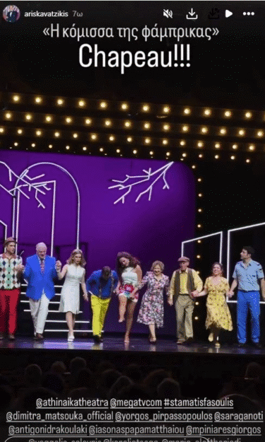 Στην παράσταση της Πέμπτης παρευρέθηκαν και αρκετά γνωστά πρόσωπα, με τον Άρη Καβατζίκη να δημοσιεύει στιγμιότυπα της ηθοποιού πάνω στη σκηνή.