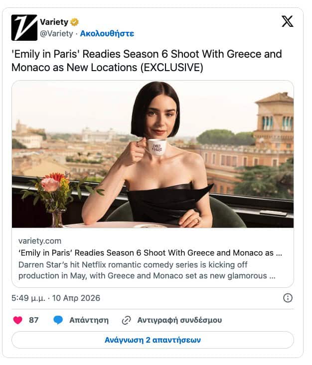 Το Emily in Paris φαίνεται πως ετοιμάζεται να ανοίξει ακόμη περισσότερο τη γεωγραφία του στον επόμενο κύκλο, με πληροφορίες να θέλουν το καστ και το συνεργείο να μετακινούνται σε νέες ευρωπαϊκές τοποθεσίες. Σύμφωνα με όσα έχουν γίνει γνωστά, μέσα στον Μάιο προγραμματίζονται γυρίσματα τόσο στην Ελλάδα όσο και στο Μονακό για την 6η σεζόν της σειράς.