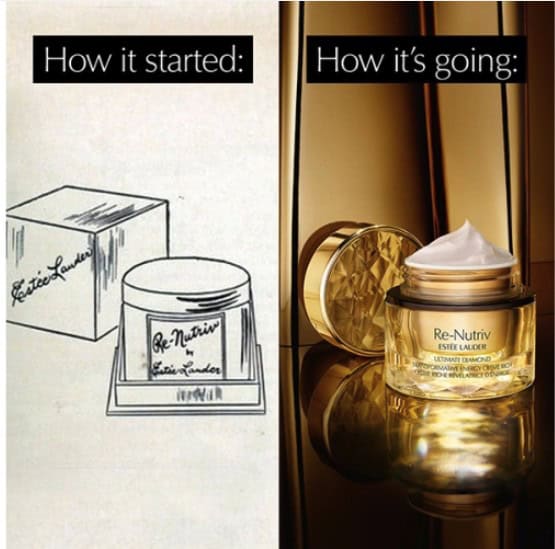 Το 1956, η Lauder τόλμησε να δημιουργήσει την πρώτη πολυτελή κρέμα παγκοσμίως, την οποία πουλούσε στα $115, όταν η μέση τιμή αγοράς μιας ενυδατικής κρέμας ήταν $10. Η Re-Nutriv ήταν τόσο μοναδική που η ακριβή της σύνθεση της φυλάχτηκε σε μυστικό θησαυροφυλάκιο. Η πρώτη «creme of creams» του brand ενισχύθηκε με 26 από τα πιο σπάνια και ακριβά συστατικά στον κόσμο. 65 χρόνια μετά, αυτή η κρέμα συνεχίζει να ταξιδεύει στα πέρατα της Γης ανακαλύπτοντας τα πιο πολύτιμα συστατικά της φύσης και προσφέροντας αξεπέραστα οφέλη στην επιδερμίδα. Το 1964, Lauder παρουσίασε το πρώτο της compact solid άρωμα, ένα φακελάκι κρέμας Youth-Dew και συνέχισε να παρουσιάζει κάθε χρόνο νέα σχέδια compact. Το 1967 κυκλοφόρησε το 24ων καρατιών επίχρυσο Golden Alligator Reusable Compact το οποίο πωλείται ακόμα. Τελικά τα compact έγιναν συλλεκτικά αντικείμενα και κάθε περίοδο εορτών, μια νέα έκδοση compact έργων τέχνης αποκαλύπτεται. Σήμερα, υπάρχουν περισσότερα από 1.700 compact στην παρακαταθήκη του Ομίλου Estée Lauder Companies με νέα σχέδια να λανσάρονται κάθε χρόνο.