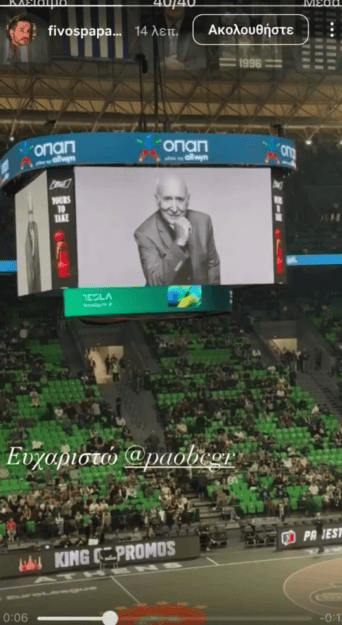 Ο γιος του μοιράστηκε στιγμιότυπο από το γήπεδο μέσα από τα Instagram Stories του, εκφράζοντας δημόσια τις ευχαριστίες του προς την ομάδα του «τριφυλλιού» για την κίνηση μνήμης και σεβασμού.