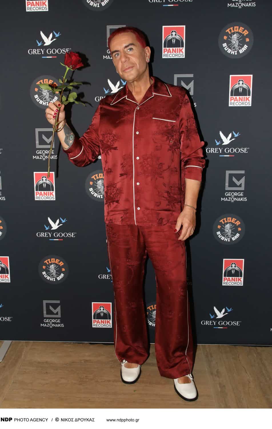 Ο χώρος ντύθηκε στα μαύρα. Το dress code ήταν αυστηρά total black, δημιουργώντας μια ατμόσφαιρα μυστηρίου και κομψότητας. Και τότε, εμφανίστηκε εκείνος. Ο Γιώργος Μαζωνάκης «έσπασε» το σκοτάδι με ένα κατακόκκινο σύνολο, ένα look που δεν ήταν απλώς ενδυματολογική επιλογή, αλλά συμβολισμός.