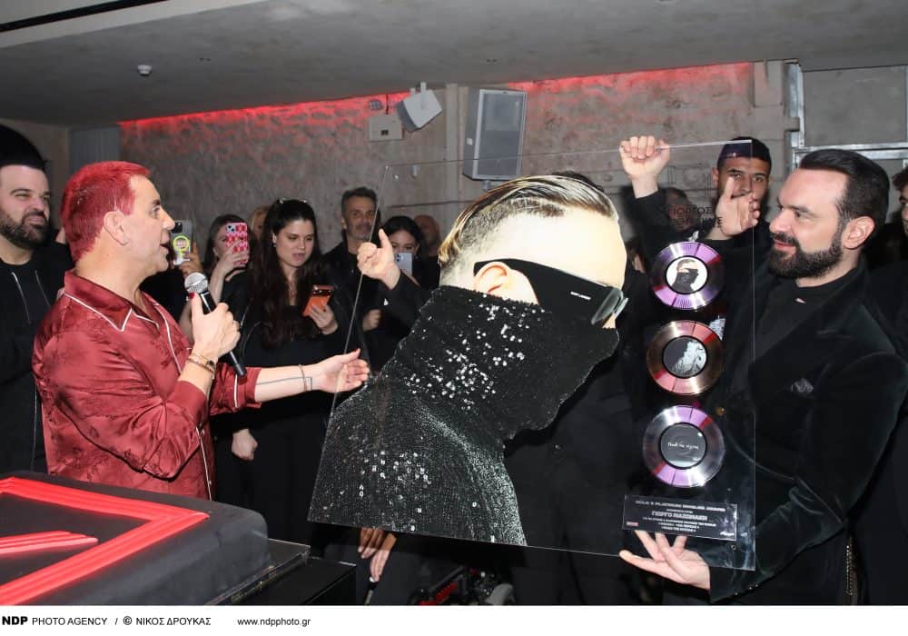 Η στιγμή που έσβησε τα κεράκια σε μια εντυπωσιακή τούρτα με το λογότυπό του είχε κάτι από τελετουργία. Λίγο μετά, ο συνιδρυτής και CEO της Panik, Γιώργος Αρσενάκος, του επιφύλασσε μια ιδιαίτερη έκπληξη: μία ειδικά κατασκευασμένη γυάλινη πλακέτα για τις πλατινένιες και χρυσές πωλήσεις των πρόσφατων επιτυχιών «Ανάσα», «Να Περνάς» και «Παιδί Της Νύχτας». «Ο Γιώργος Μαζωνάκης είναι ο πιο εμβληματικός ερμηνευτής των τελευταίων χρόνων.