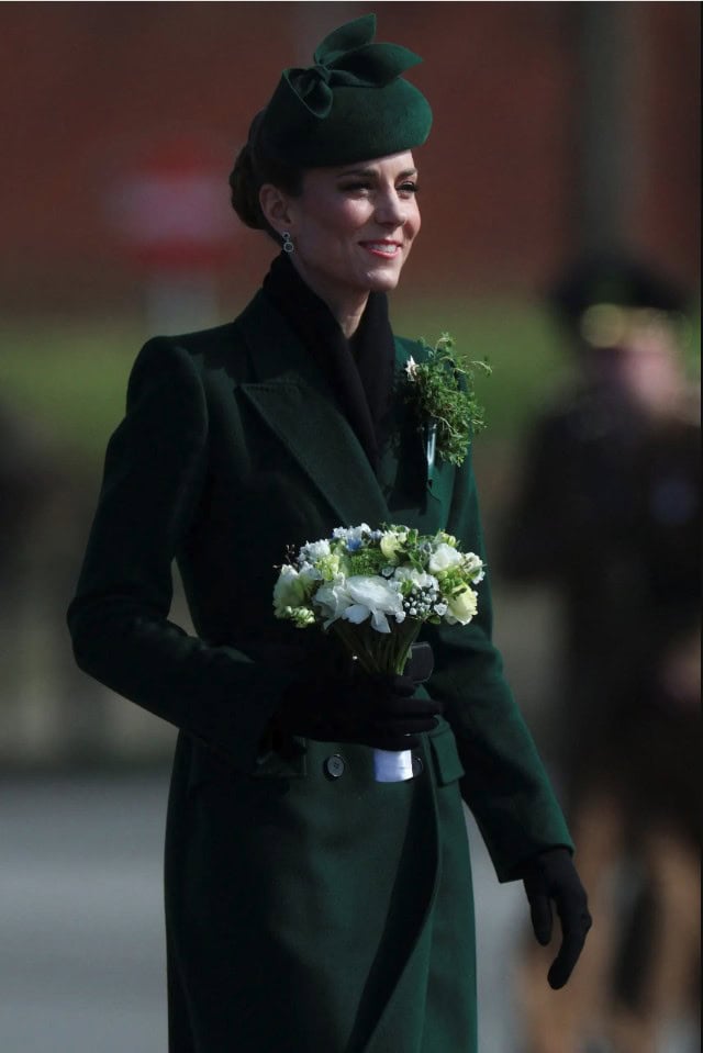 Η Πριγκίπισσα της Ουαλίας, Κέιτ Μίντλετον, για ακόμη μία φορά απέδειξε ότι γνωρίζει πολύ καλά πώς να ντύνεται σωστά σε επίσημες περιστάσεις. Στην ετήσια παρέλαση για την Ημέρα του Αγίου Πατρικίου, εμφανίστηκε με ένα κομψό και εντυπωσιακό σύνολο σε βαθύ πράσινο χρώμα, τιμώντας την παράδοση της ημέρας.