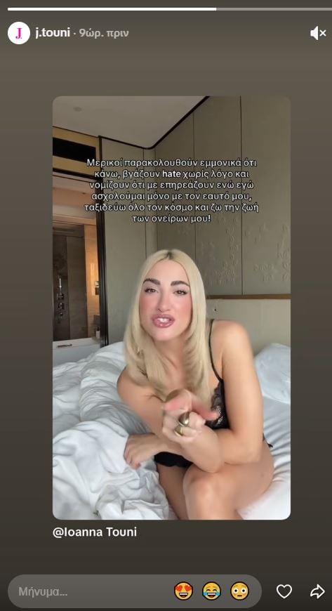 Υπενθυμίζεται ότι η Ιωάννα Τούνη έχει κατά καιρούς, μέσα από τα social media, αφήσει διάφορα υπονοούμενα, ανάμεσά τους και ορισμένα που αφορούσαν τον πρώην σύντροφό της, Δημήτρης Αλεξάνδρου, με τον οποίο έχει αποκτήσει τον 3χρονο γιο τους, Πάρη.