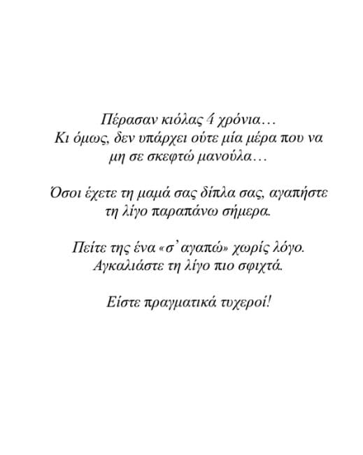 Με λόγια γεμάτα αγάπη και νοσταλγία, η ίδια μίλησε ξανά για τον ισχυρό δεσμό που τις ένωνε, επισημαίνοντας πως η απουσία της μητέρας της παραμένει έντονη σε κάθε στιγμή της καθημερινότητάς της.