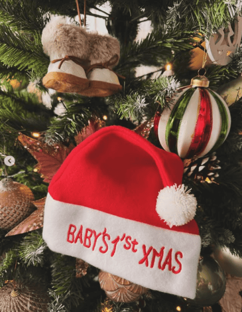 Παράλληλα, μοιράστηκε και μια φωτογραφία από το χριστουγεννιάτικο σκουφάκι που αγόρασε για τον γιο της, με τη φράση «Baby’s 1st XMAS», υπογραμμίζοντας τη σημασία αυτής της πρώτης γιορτής.