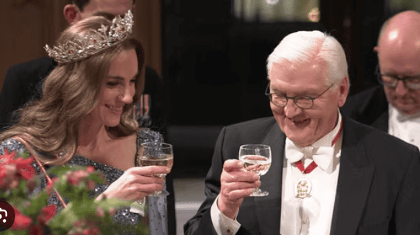 Παρά το βασιλικό μεγαλείο, τα βλέμματα στράφηκαν κυρίως στην πριγκίπισσα της Ουαλίας, την Κέιτ Μίντλετον. Η Κάθριν εμφανίστηκε με μια γαλάζια τουαλέτα της Jenny Packham και φόρεσε τη σπάνια τιάρα Oriental Circlet της βασίλισσας Βικτωρίας, διακοσμημένη με 2.600 διαμάντια και μοτίβα λωτού.