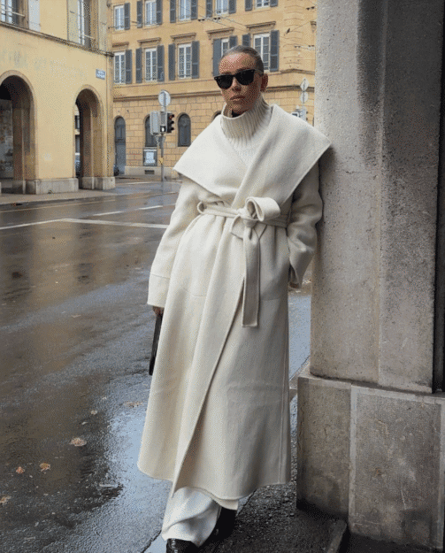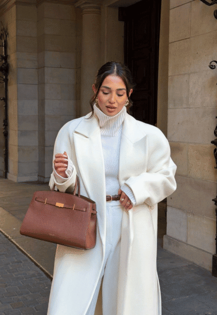 Το λευκό παλτό είναι το απόλυτο statement piece. Oversized για urban chic εμφανίσεις ή tailored για αυστηρή γραμμή, θυμίζει σταρ παλιάς ταινίας που κατεβαίνει από τα σκαλιά ενός χιονισμένου ξενοδοχείου. Συνδύασέ το με δερμάτινα γάντια ή ένα camel φουλάρι — το λευκό δεν χρειάζεται πολλά, μόνο τα σωστά.