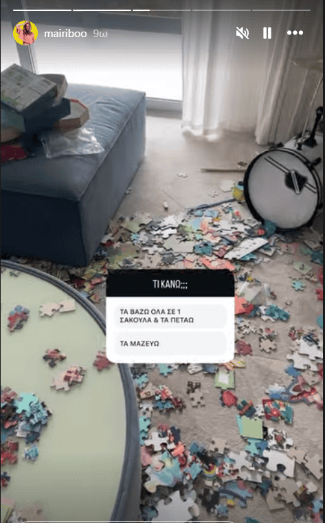 Η μικρή, εκμεταλλευόμενη τη στιγμή που η μαμά ήταν απασχολημένη —και φορώντας στολή πριγκίπισσας, γιατί το χάος θέλει και στιλ— άνοιξε τα παιχνίδια και -κυρίως- τα παζλ της και τα άπλωσε σε όλο το σαλόνι! Η απόγνωση και η… κραυγή της Μαίρης για βοήθεια στη λεζάντα μαρτυρούσαν το «μικρό εγκεφαλικό» που της ήρθε αντικρίζοντας το χάος.