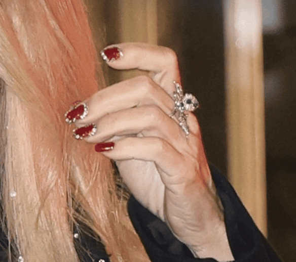 Η Μαριάννα Λάτση επέλεξε ένα πλούσιο και εντυπωσιακό μανικιούρ, ενσωματώνοντας στοιχεία που αγαπούν οι περισσότερες γυναίκες και δημιουργώντας μια ιδανική πρόταση για τις γιορτές. Το αποτέλεσμα είχε έντονο, bold χαρακτήρα, με βάση σε λαμπερό κόκκινο glitter, ενώ το περίγραμμα σε επιλεγμένα νύχια τονίστηκε με ασημένια κρύσταλλα. Το σύνολο απέπνεε μια ξεκάθαρα festive διάθεση και λειτουργούσε ως statement λεπτομέρεια.