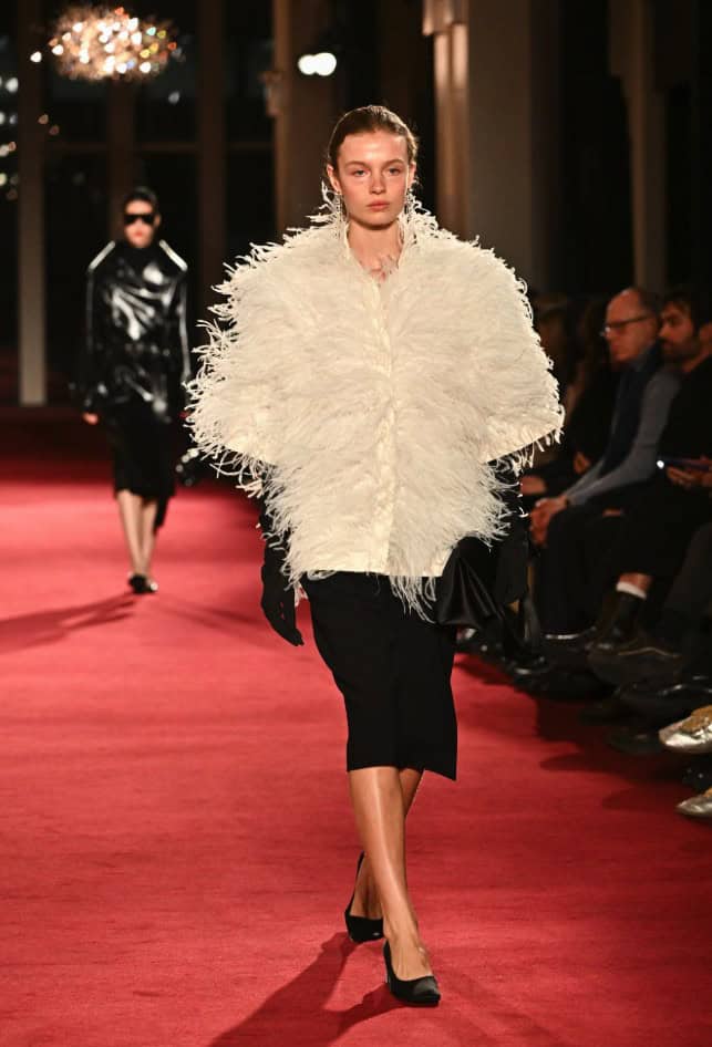 Φτερά και παγιέτες, πια, δεν περιορίζονταν στα βραδινά φορέματα, αλλά διακοσμούσαν T-shirts, πουκάμισα και πλισέ παντελόνια, δημιουργώντας εντυπωσιακά κοντράστ μεταξύ πολυτέλειας και καθημερινότητας. Η τεχνική του mix and match ήταν πιο εμφανής από ποτέ, υπενθυμίζοντας γιατί η δουλειά του παραμένει τόσο αναγνωρίσιμη.