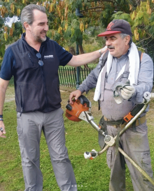 Για τις συναντήσεις του με κατοίκους και τοπικούς παράγοντες, ο Νικόλαος Ντε Γκρες επέλεξε casual εμφάνιση, φορώντας T-shirt και γκρι παντελόνι. Τις φωτογραφίες από το ταξίδι μοιράστηκε ο Ανδρέας Μέγγος , ειδικός σε βασιλικά θέματα, στον προσωπικό του λογαριασμό στο Instagram, συνοδεύει τις με σχετική λεζάντα.