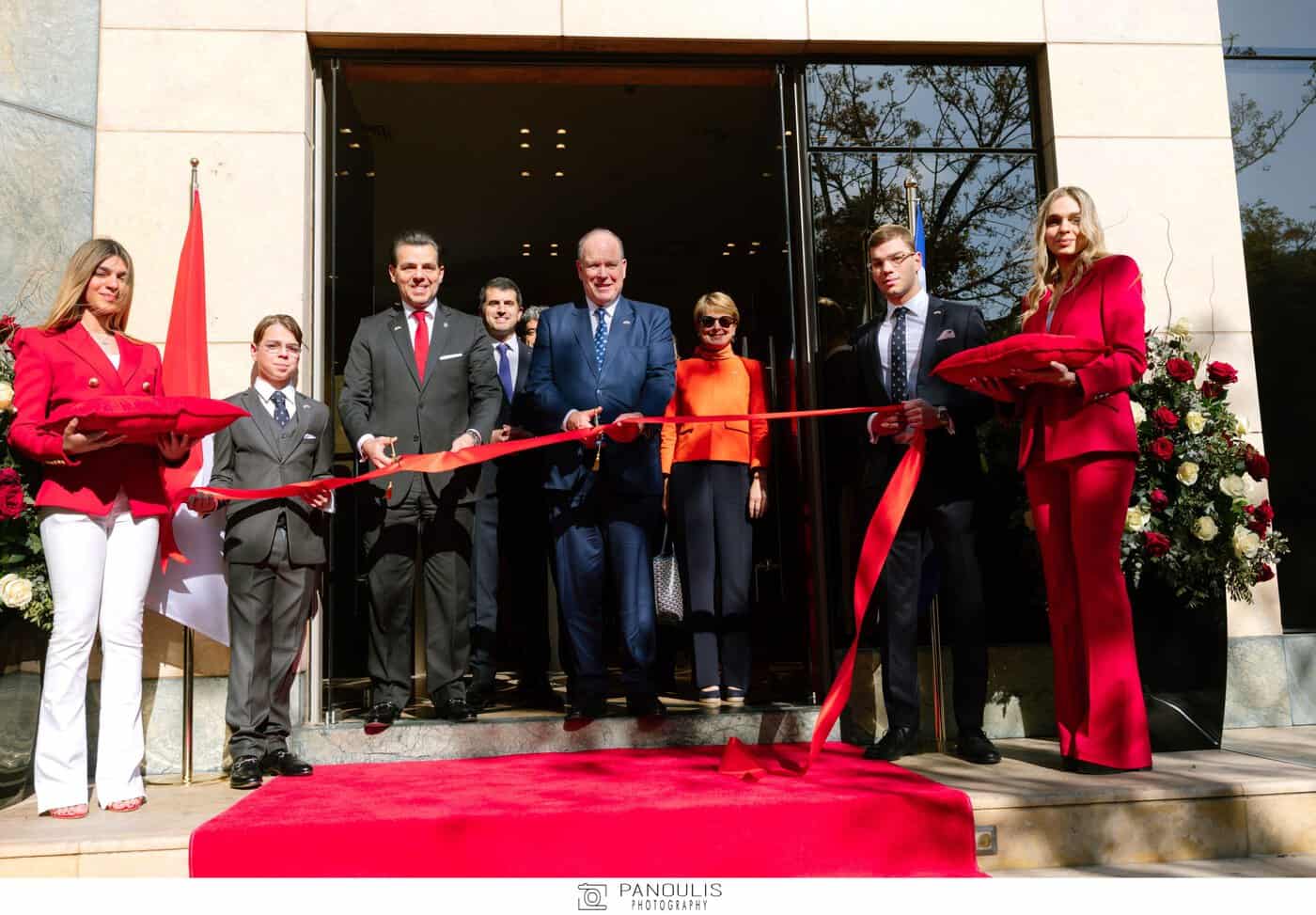 Τα εγκαίνια του Επίτιμου Προξενείου σηματοδοτήθηκαν από την από κοινού κοπή της κορδέλας από τον Πρίγκιπα Αλβέρτο Β΄ και τον Επίτιμο Πρόξενο, Δρ. Βασίλη Γ. Αποστολόπουλο, καθώς και από τη φύτευση ελιάς στην είσοδο του Προξενείου, ως διαχρονικού συμβόλου ειρήνης, σταθερότητας και γόνιμης συνεργασίας μεταξύ των δύο χωρών. Ο Αγιασμός τελέστηκε από τον Σεβασμιότατο Μητροπολίτη Κηφισίας, Αμαρουσίου, Ωρωπού και Μαραθώνος, κ. Κύριλλο, με την ακολουθία του, παρουσία του Μακαριώτατου Αρχιεπίσκοπου Αθηνών και πάσης Ελλάδος κ.κ. Ιερώνυμου Β΄. Την τελετή πλαισίωσε η Φιλαρμονική Ορχήστρα του Δήμου Κηφισιάς, η οποία ανέκρουσε τους εθνικούς ύμνους του Πριγκιπάτου του Μονακό και της Ελλάδας.