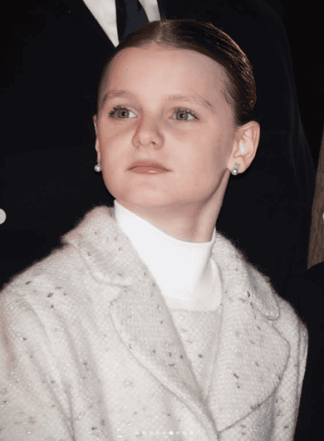 Η μικρή πριγκίπισσα Γκαμπριέλα εμφανίστηκε ντυμένη σαν μικρή κυρία του οίκου Dior, επιλέγοντας ένα λευκό μάλλινο φόρεμα αξίας 1.000 ευρώ, με λεπτές ασημένιες πινελιές που του έδιναν εορταστική λάμψη. Το συνδύασε με ένα ασορτί παλτό του ίδιου οίκου, αξίας 1.300 λιρών, λευκό μάλλινο καλσόν και κομψά λευκά παπούτσια από τον οίκο Chloé. Μητέρα και κόρη κινήθηκαν στην ίδια παλέτα και απέπνεαν μια εικόνα γιορτινής αρμονίας.