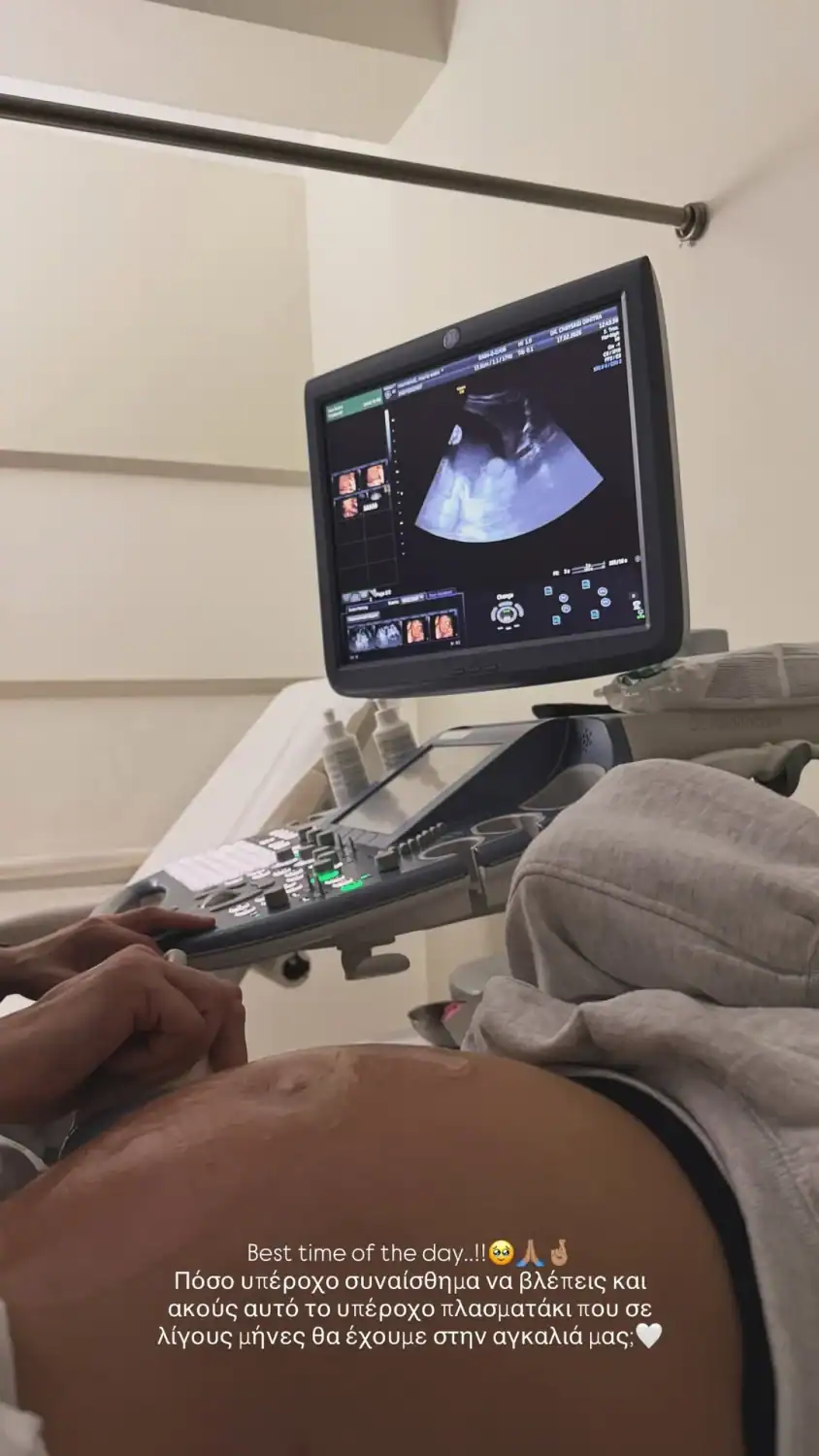 Σήμερα, ο ίδιος θέλησε να μοιραστεί ακόμη μία συγκινητική στιγμή με τους followers του. Το ζευγάρι βρέθηκε για υπερηχογράφημα, όπου είχαν την ευκαιρία να δουν και να ακούσουν τον γιο τους. Ο Σάκης Κατσούλης, εμφανώς συγκινημένος, έγραψε στο story του: «Best time of the day! Πόσο υπέροχο συναίσθημα να βλέπεις και ακούς αυτό το υπέροχο πλασματάκι που σε λίγους μήνες θα έχουμε στην αγκαλιά μας».