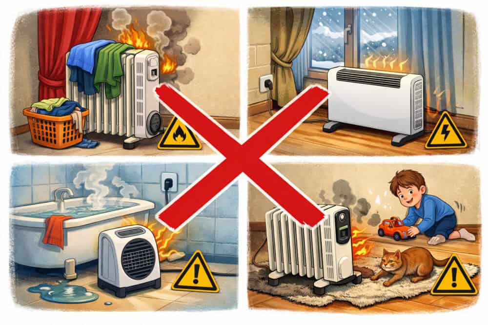 Παρότι όλα λειτουργούν με ηλεκτρική ενέργεια, η σωστή τοποθέτηση είναι καθοριστική τόσο για την ασφάλεια όσο και για τη μέγιστη απόδοση, χωρίς καμία απώλεια θέρμανσης όταν τηρούνται οι βασικοί κανόνες.