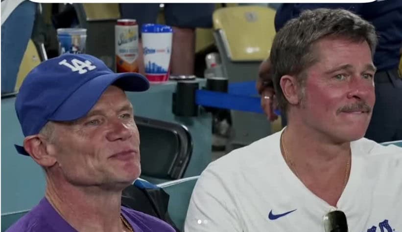 Ο ηθοποιός έδειξε την υποστήριξή του στους Dodgers, φορώντας ένα λευκό μακρυμάνικο μπλουζάκι με το λογότυπο της ομάδας, ενώ ο Flea επέλεξε πιο… rock εμφάνιση, με μωβ μπλουζάκι των LA Lakers και μπλε καπέλο. Παρόλα αυτά, αυτό που τράβηξε όλα τα βλέμματα ήταν η έντονα κοκκινισμένη όψη του Μπραντ Πιτ. Με κοντό, ξανθό μαλλί και ένα λεπτό μουστάκι, ο ηθοποιός έμοιαζε αγνώριστος, με αποτέλεσμα τα social media να πάρουν «φωτιά».