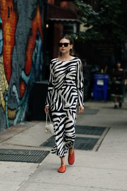 Το zebra print είναι εξίσου bold με το λεοπάρ αλλά πιο ιδιαίτερο. Διάλεξε ένα ρευστό φόρεμα και συνδύασέ το με κόκκινα παπούτσια – η τέλεια εναλλακτική του κλασικού μαύρου.