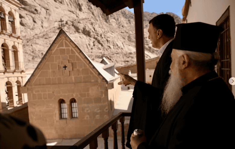 «Ύπξε μία από τις μεγαλύτερες ευλογίες της ζωής μου ότι με αξίωσε ο Θεός να Ιερώ με την οικογένειά μου τη Μονή Αγίας Αικατερίνης Όρους Σινά. Την παλαιότερη Μονή στον κόσμο και μνημείο πολιτιστικής κληρονομιάς της UNESCO. Είμαι ευγνώμων στον Μακαριώτατο Αρχιεπίσκοπο Σινά, Φαράν και Ραϊθώ κ. Συμεών για την ξενάγηση στη Μονή. Εύχομαι με τη σοφία του και την αγάπη του για την Ιερά Μονή, δεν είναι φάρος ενότητας και πίστης», έγραψε χαρακτηριστικά στον προσωπικό του λογαριασμό στο Instagram.