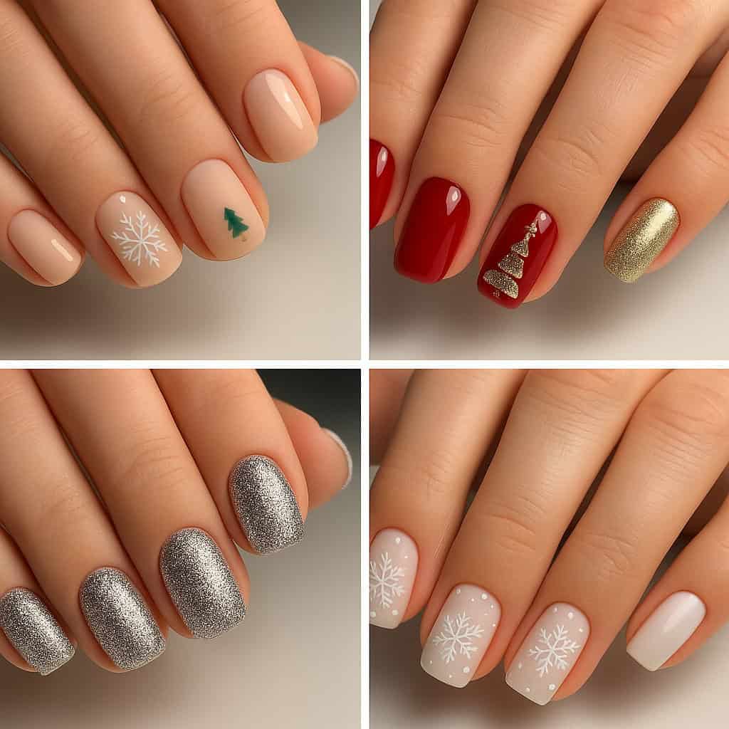 Οι ιδέες για χριστουγεννιάτικα νύχια είναι αμέτρητες και καλύπτουν κάθε γούστο. Τα minimal Xmas nails παραμένουν σταθερή αξία, ειδικά για όσες αγαπούν την κομψότητα χωρίς υπερβολές. Μια nude ή γαλακτερή βάση, συνδυασμένη με μικρές λευκές χιονονιφάδες, διακριτικά αστεράκια ή ένα tiny χριστουγεννιάτικο δεντράκι, αρκεί για να δημιουργήσει γιορτινή διάθεση χωρίς να γίνεται υπερφορτωμένο το αποτέλεσμα.